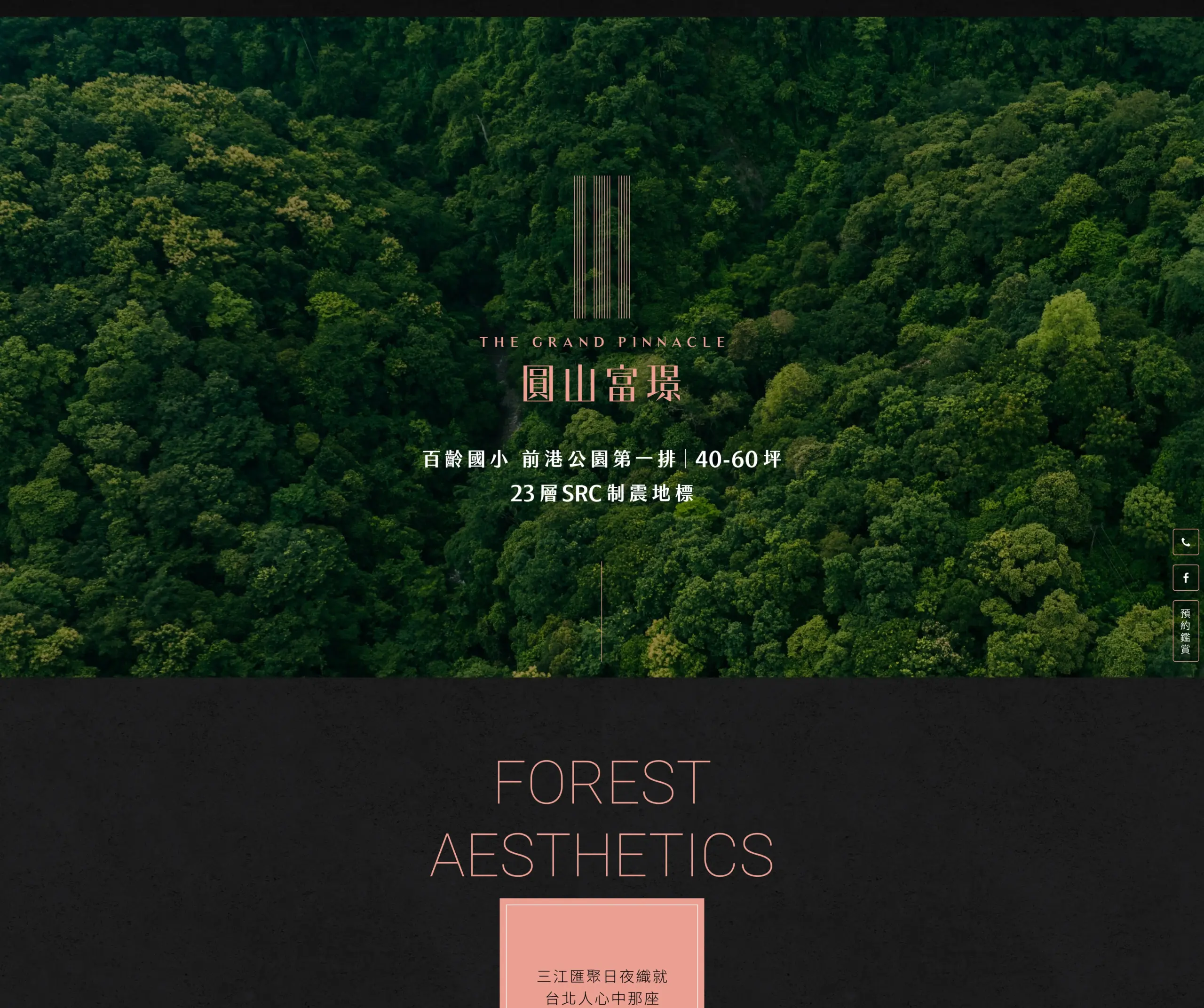「The Grand Pinnacle 圓山富璟」是一個位於台北士林、面向百齡國小與前港公園的高端住宅案,網頁以大幅景觀照與簡短文案建立起「靠近綠地與校園、生活機能優越」的第一印象,並透過建築團隊和品牌配備的呈現,傳達出這是為追求品質與長期保值的買家打造的傳世宅。