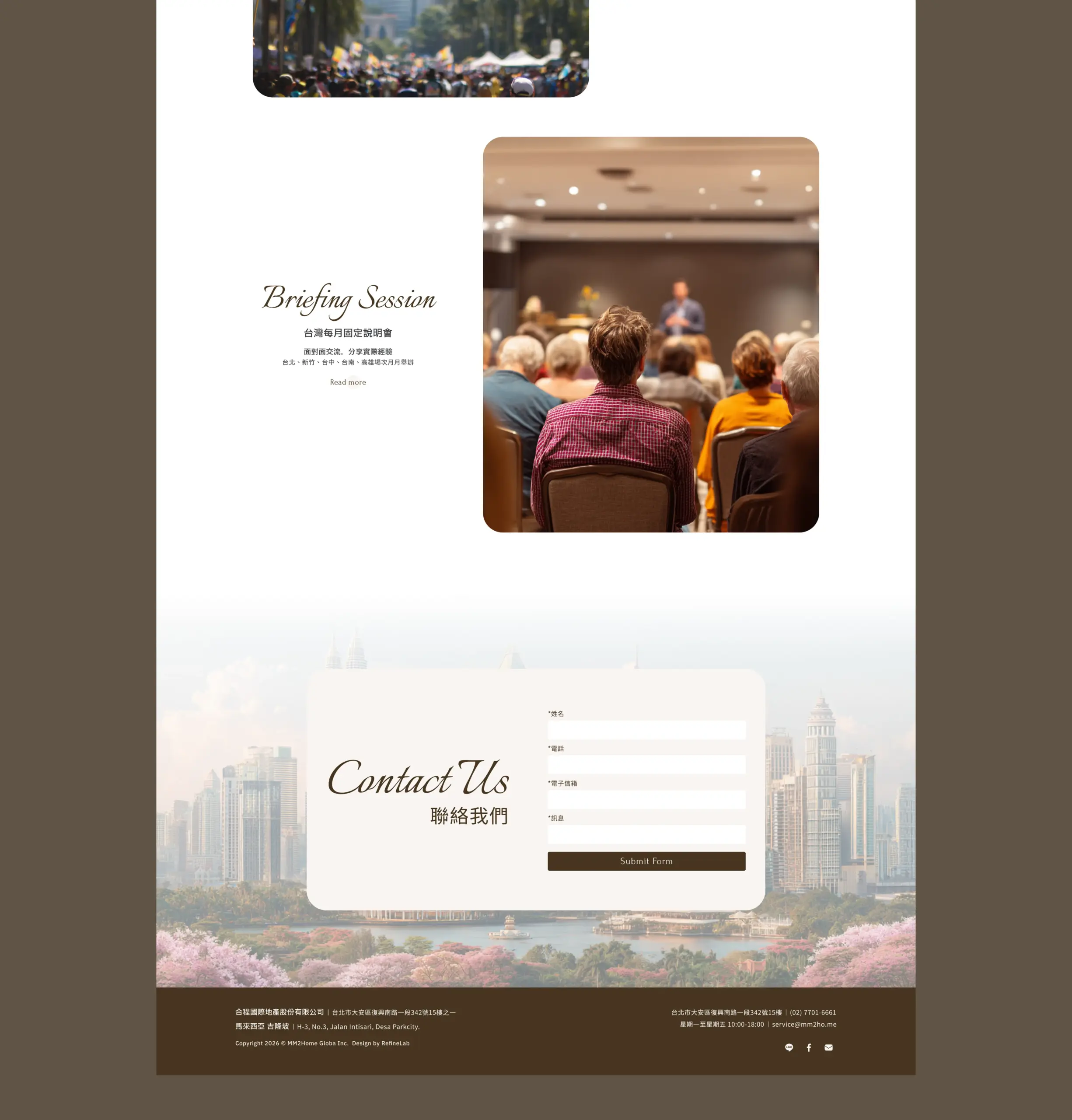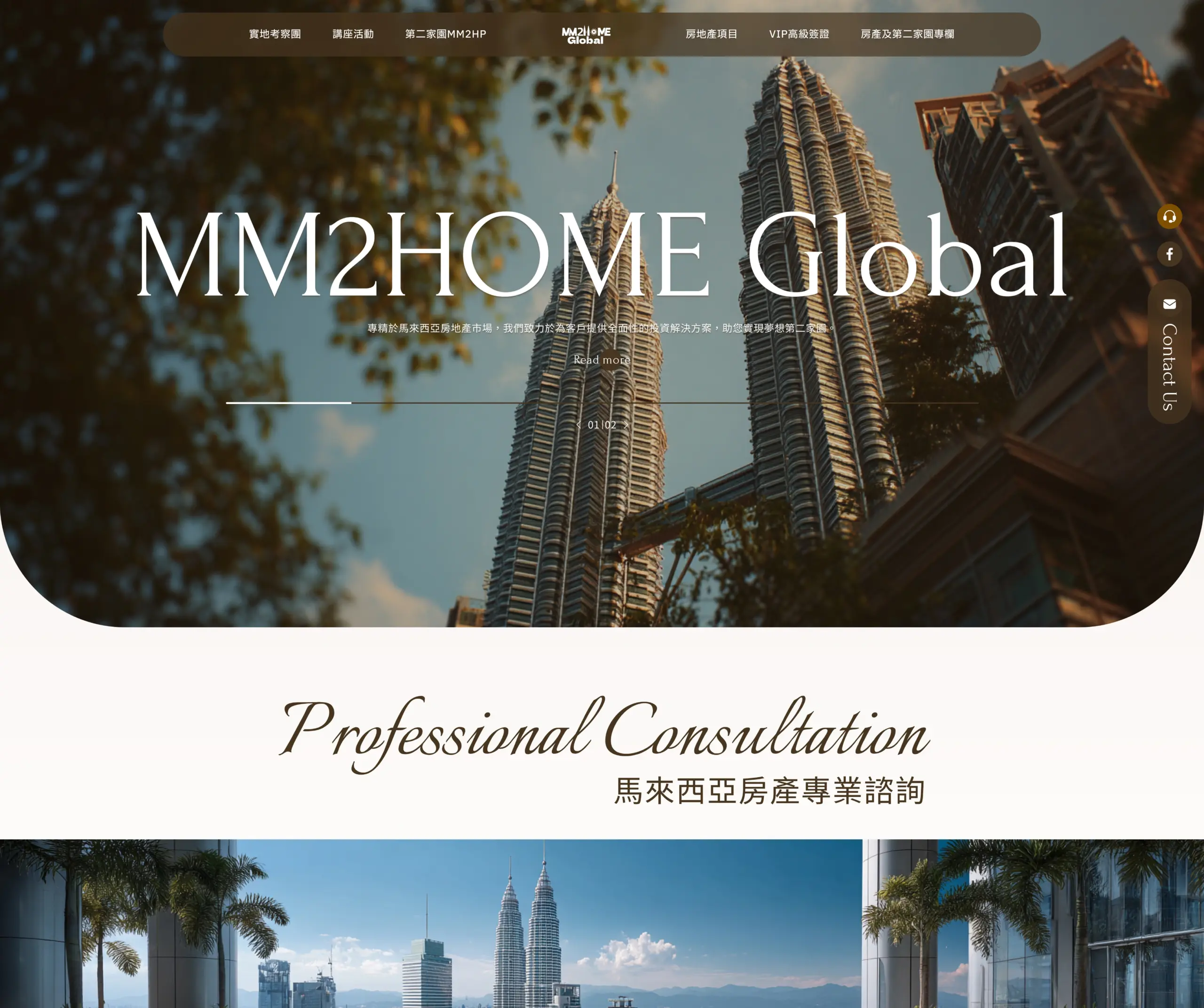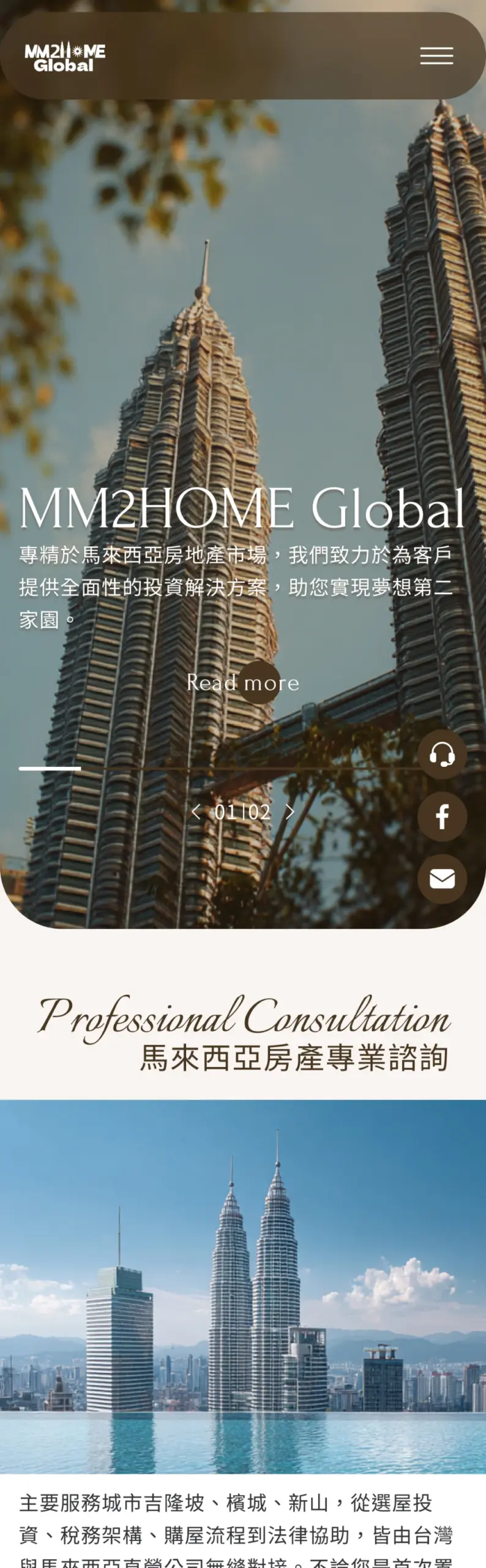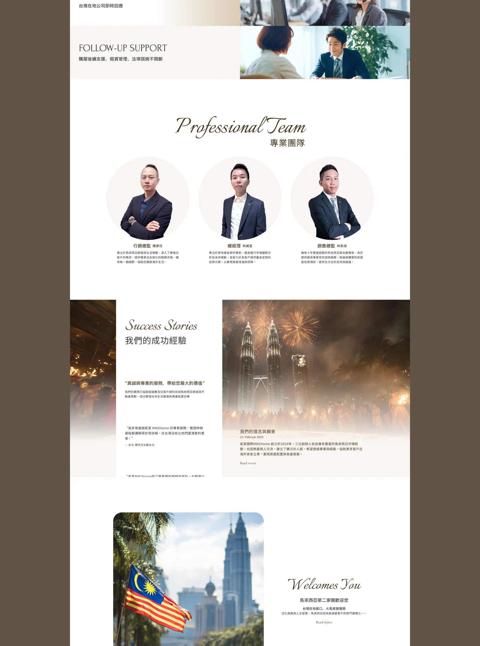 網站採取「由宏觀願景至微觀服務」的敘事邏輯,從馬來西亞的移居優勢出發,逐步引導至 MM2H 政策解析、房產投資機會以及醫療教育等一站式支援服務,確保資訊傳遞具備高度的邏輯性。這種模組化的內容呈現方式,將艱澀的法律條文與申請流程轉化為易於吸收的圖文卡片,並在服務亮點末端配置了精準的行動召喚模組,引導潛在客戶在獲得專業價值的當下能立即進行聯繫,達成極高質感的數位轉化動線。
