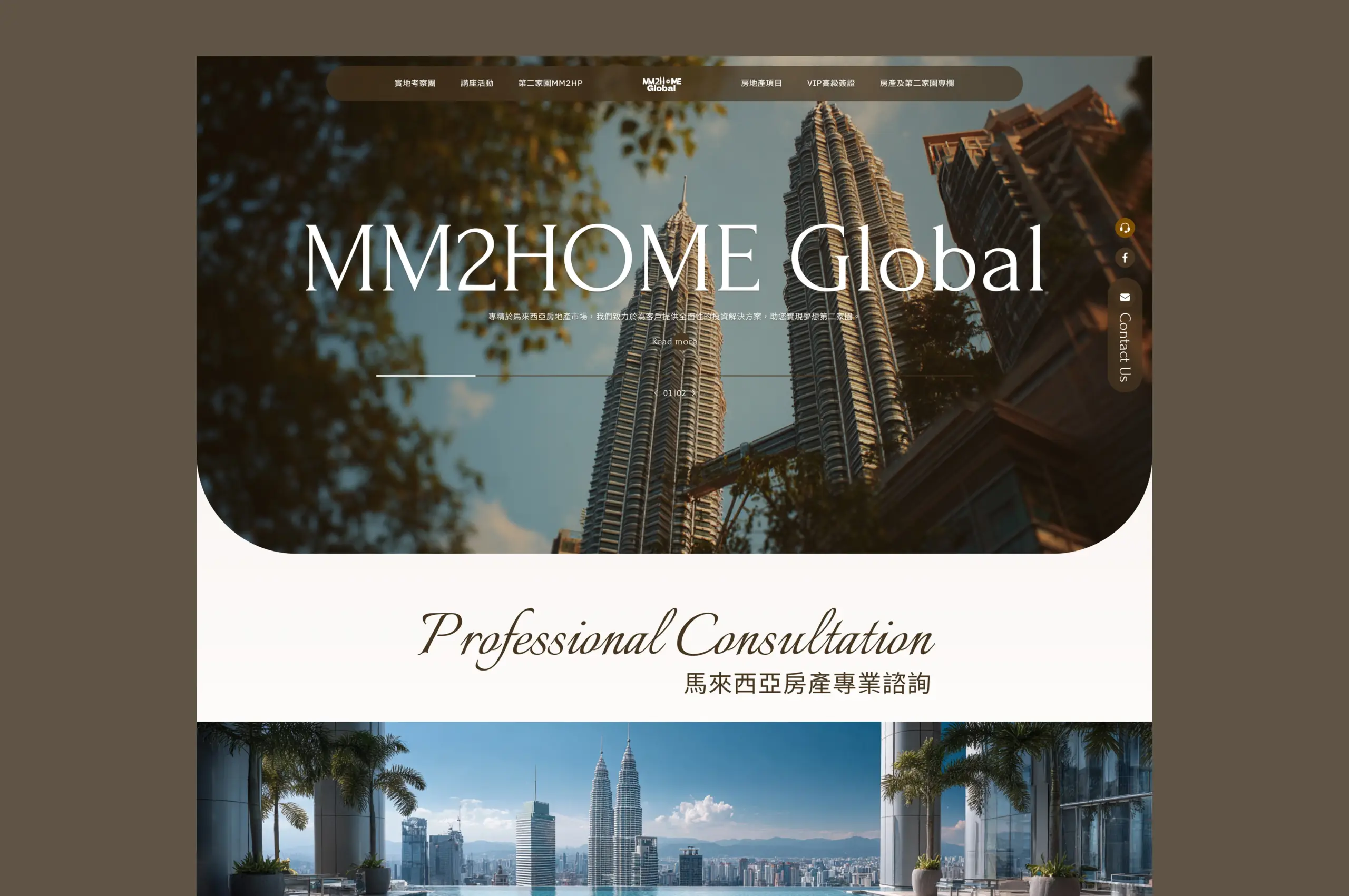 MM2Home 是一個專為追求高品質海外生活的族群打造的馬來西亞移居顧問平台,其設計核心在於透過高度專業的資訊分層與親切的視覺語言,建立起跨國服務的深度信任感。本專案捨棄了傳統代辦業者常見的雜亂排版,轉而採用現代洗練的企業美學語彙,將複雜的 MM2H 政策諮詢、優質房產配置及全方位的移居生活支援進行深度整合,旨在為用戶提供一個資訊透明、動線直覺且極具權威感的數位服務門戶。