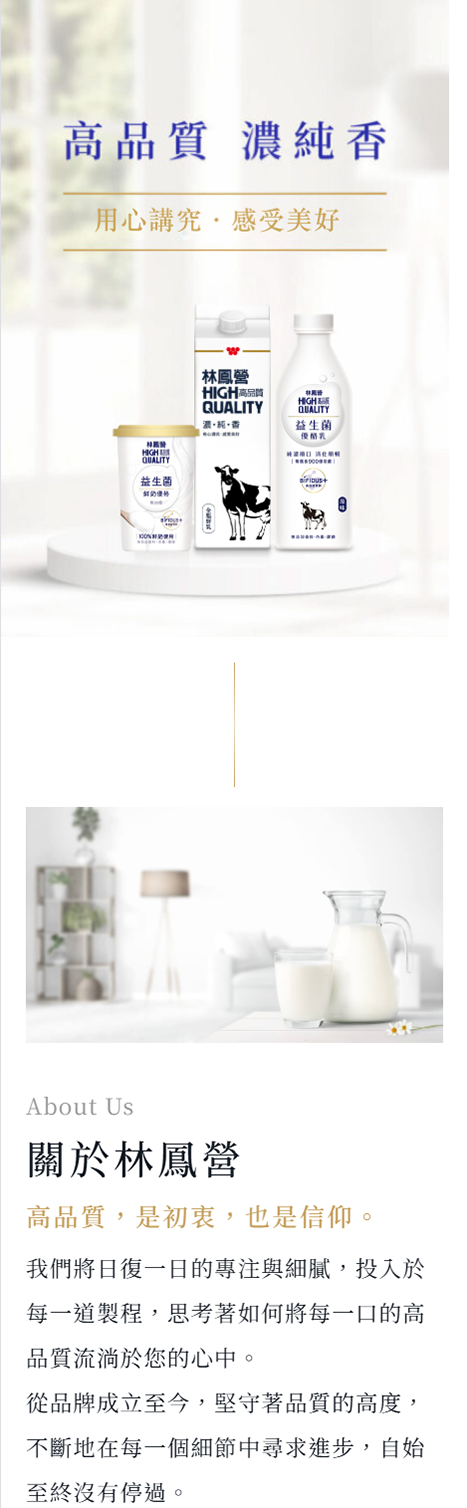林鳳營是台灣高品質鮮乳的代表,以「濃、純、香」聞名。品牌堅持使用100% A級生乳,透過嚴格的牧場管理與多重檢驗,確保頂級品質。此外,林鳳營更率先推動「產銷透明系統」,讓消費者安心追溯產品來源,憑藉對品質的堅持贏得信賴。