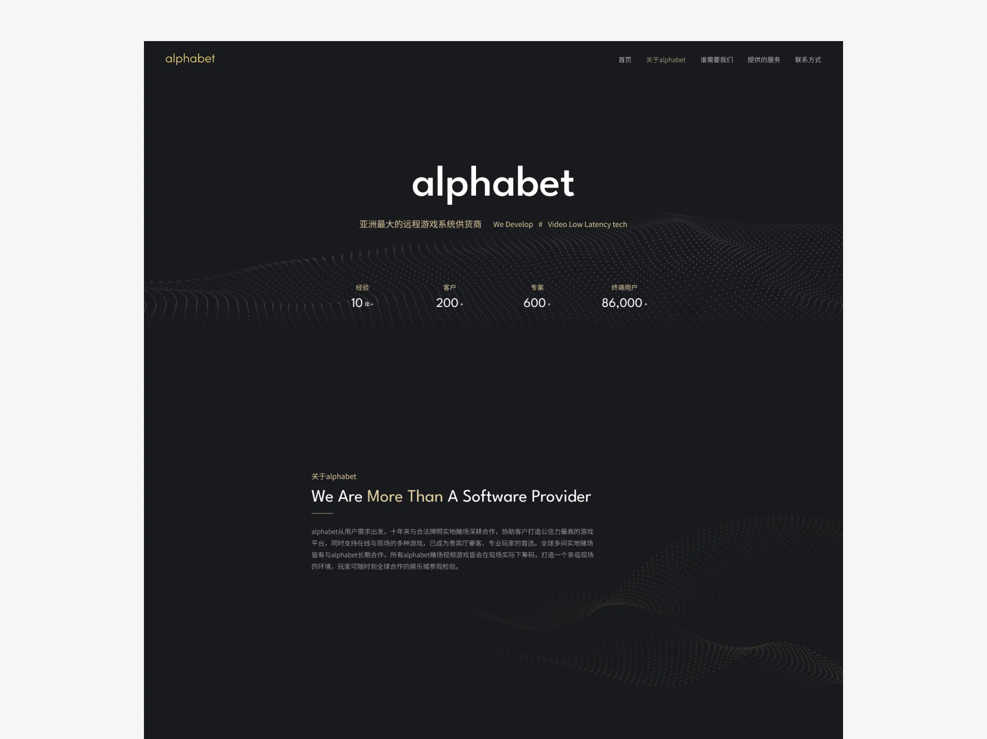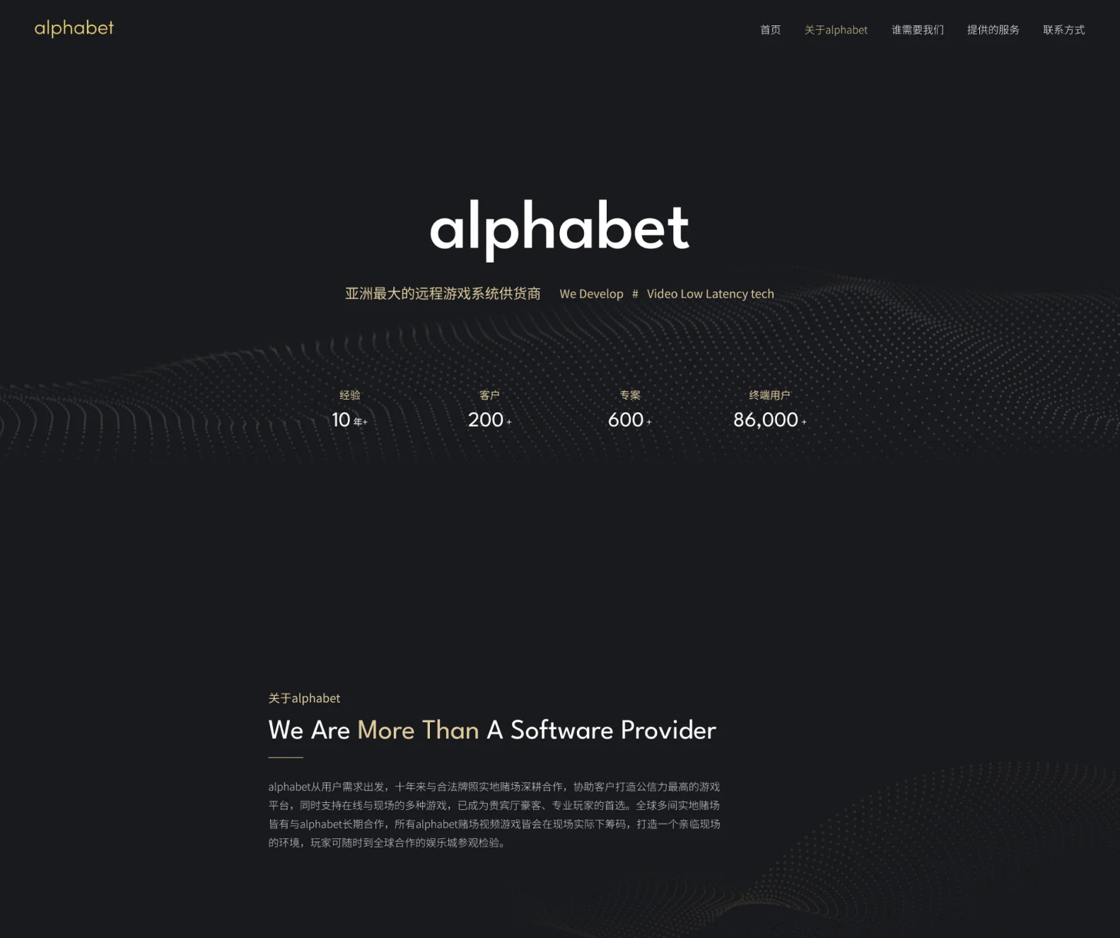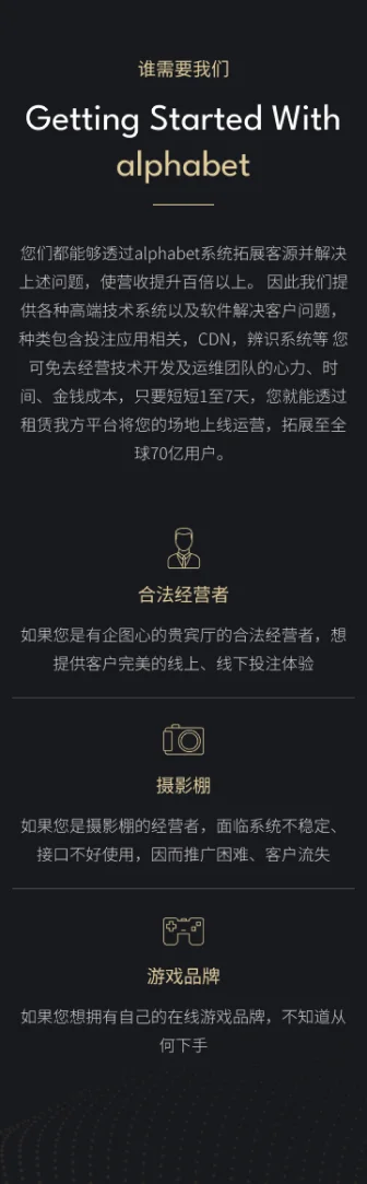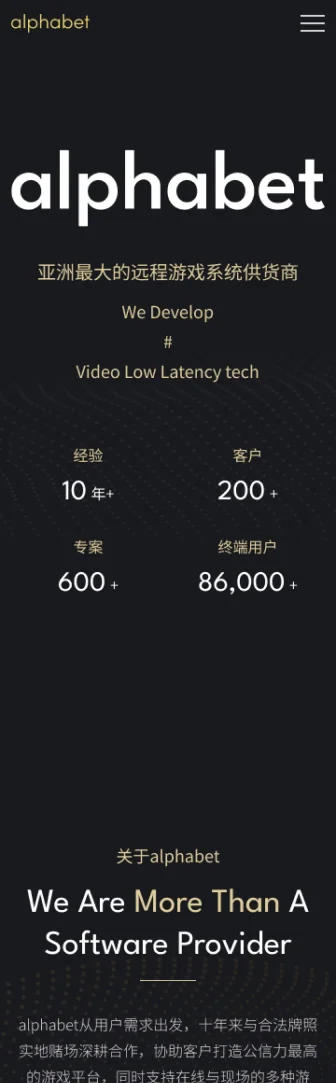 alphabet從用戶需求出發,十年來與合法牌照實地賭場深耕合作,協助客戶打造公信力最高的遊戲平台,同時支持在線與現場的多種遊戲,已成為貴賓廳豪客、專業玩家的首選。全球多間實地賭場皆有與alphabet長期合作,所有alphabet賭場視頻遊戲皆會在現場實際下籌碼,打造一個親臨現場的環境,玩家可隨時到全球合作的娛樂城參觀檢驗。