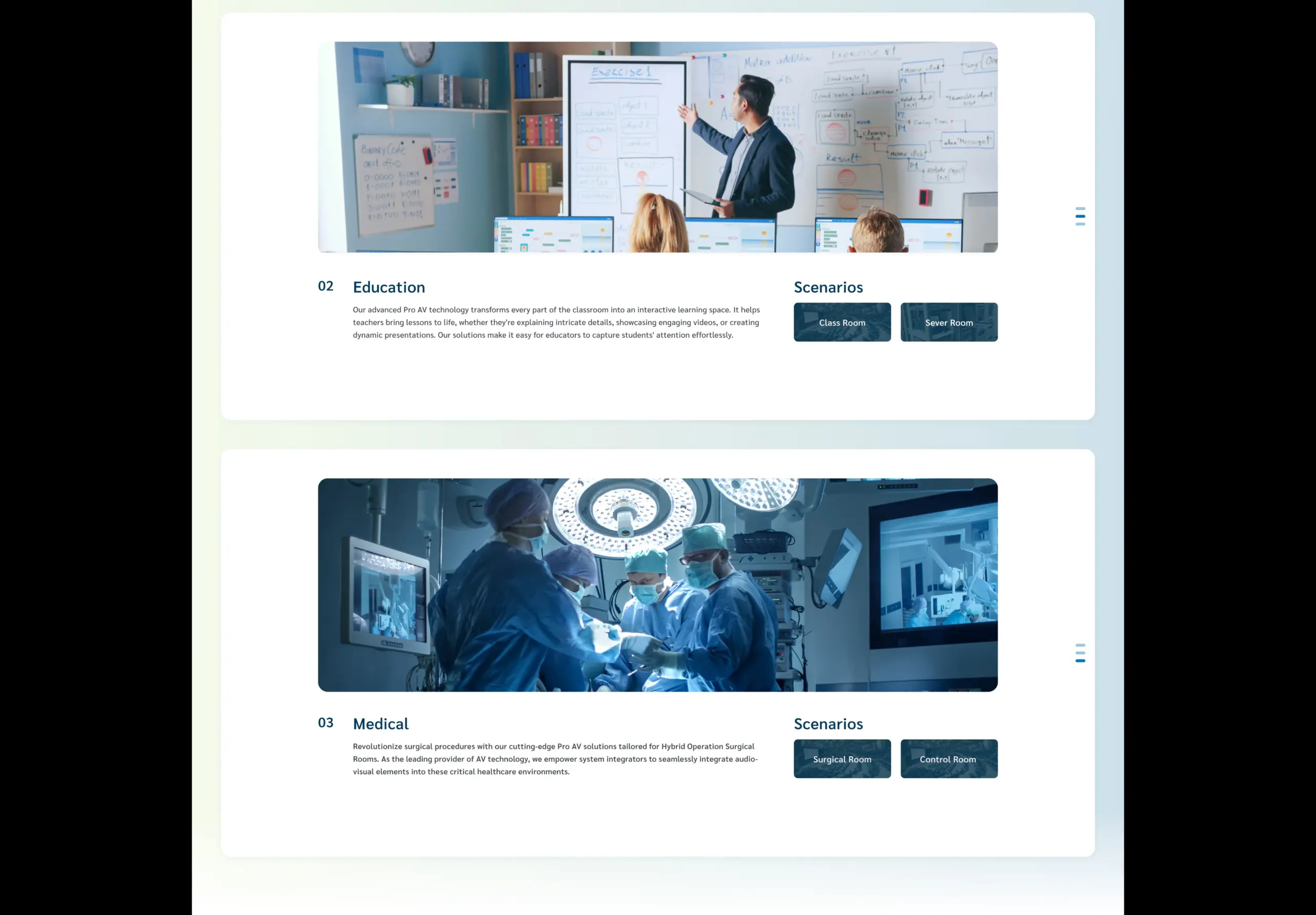 用分區式產品卡與情境圖示幫助訪客快速對應解法,產品詳頁應包含高解析產品圖、系統架構示意圖、關鍵規格表與下載按鈕,同時在每個產品或應用頁嵌入「案例場景/安裝情境」的視覺化示例與明顯的聯絡 CTA;行動版務必將聯絡表單與「Where to Buy」置前,並以黏性聯絡按鈕與簡潔的產品篩選器提升 B2B 轉換效率。
