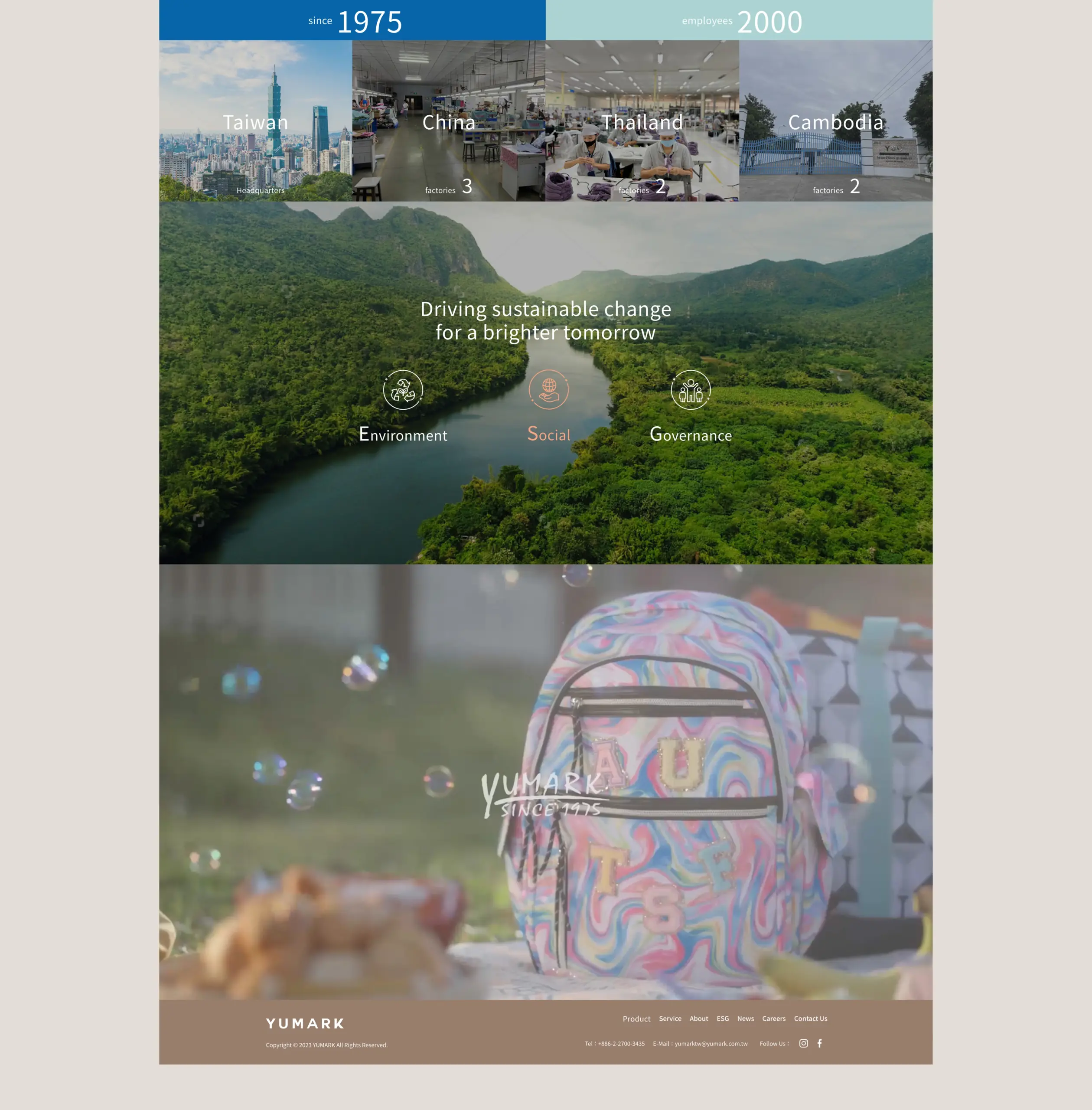 YUMARK 是一家有歷史且規模大的配件製造供應商,官網一進來就能看到它從 1975 年開始的背景、遍佈多國的生產據點與龐大工廠面積,並以「產品多元」與「全球供應」作為品牌主軸,整體視覺與文字給人的印象是專業、可靠且具產業實力,適合作為大型零售或代工客戶的長期夥伴。